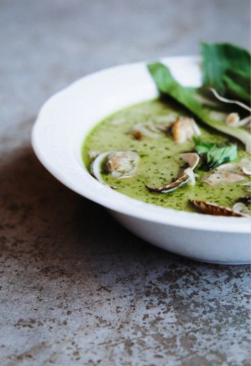 Creamy Pea Soup with Mussels
